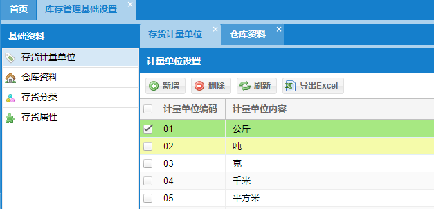 【库存管理基础设置】:存货计量单位、仓库资料、存货分类、存货属性;