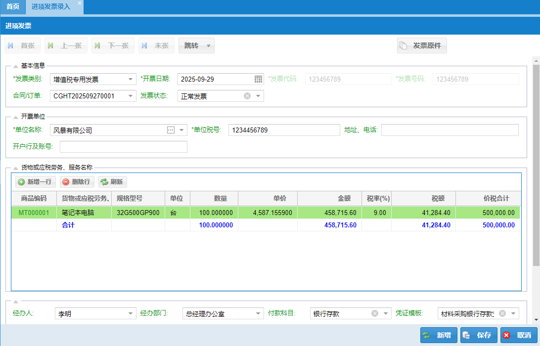 ③进销发票录入
