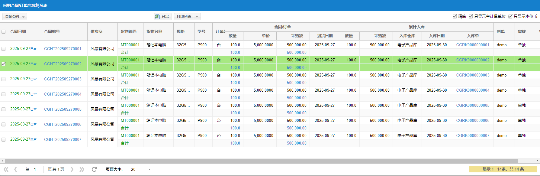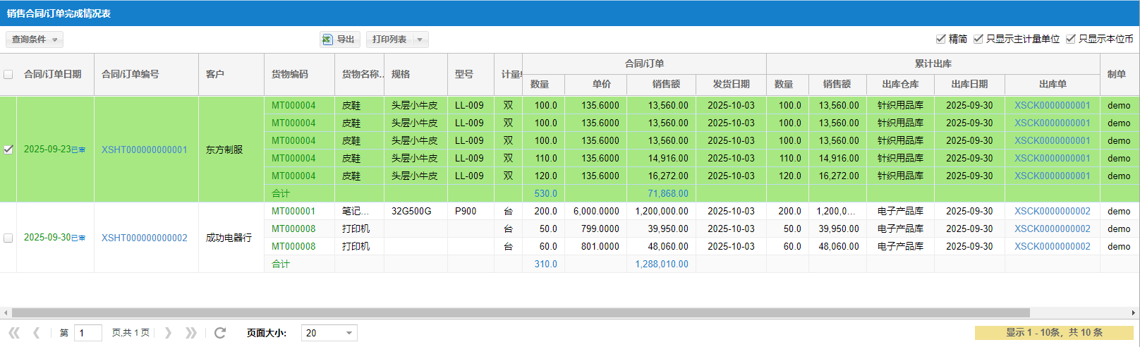 ④【报表】合同/订单完成情况表