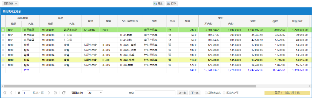 ⑤【报表】销售出库汇总表